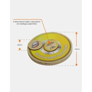 Pomoc edukacyjna, która pomoże już od najmłodszych lat uczyć zasad prawidłowego segregowania odpadów. W drewnianej skrzyneczce umieściliśmy 5 drewnianych krążków imitujących kosze na śmieci (fi 15cm) oraz 20 elementów (fi 5cm) z nadrukowanymi ilustracjami danego odpadu z jednej strony oraz informacją o czasie rozkładu z drugiej. Zadaniem jest właściwe dopasowanie odpadu do rodzaju kosza. Dopasowanie ułatwia zastosowana zgodnie z ustawą z dn 1 lipca 2017 kolorystyka koszy.