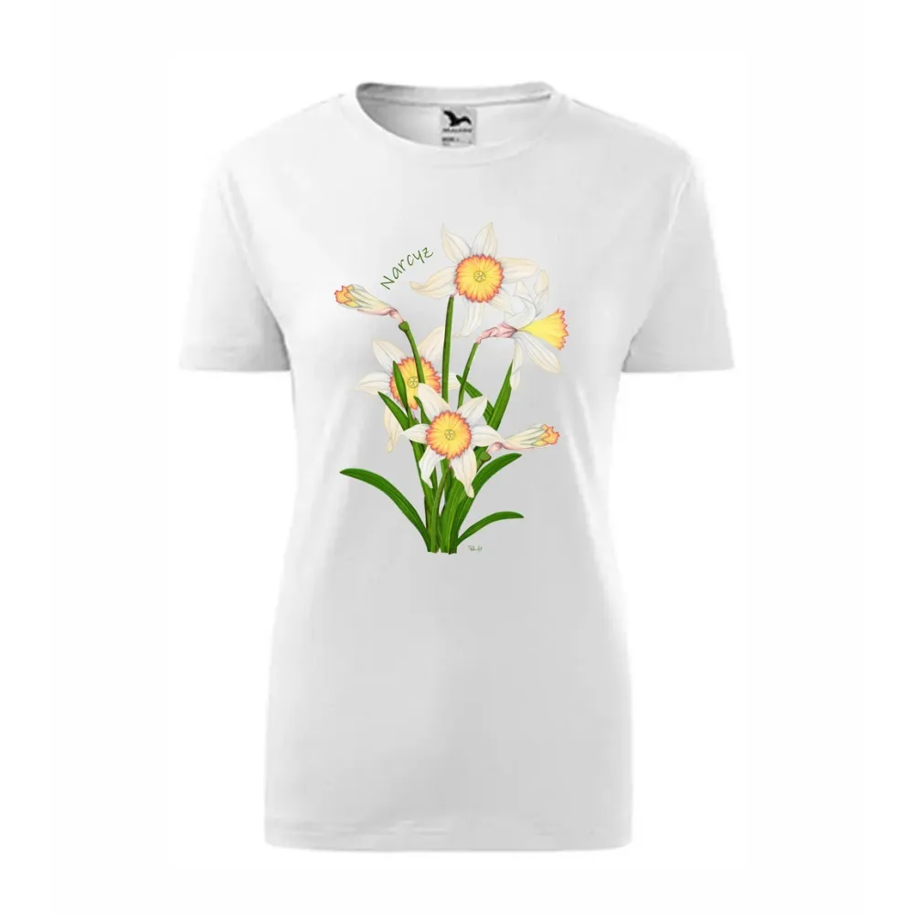 KOSZULKA BAWEŁNIANA DAMSKA BIAŁA KOLEKCJA KWIATY