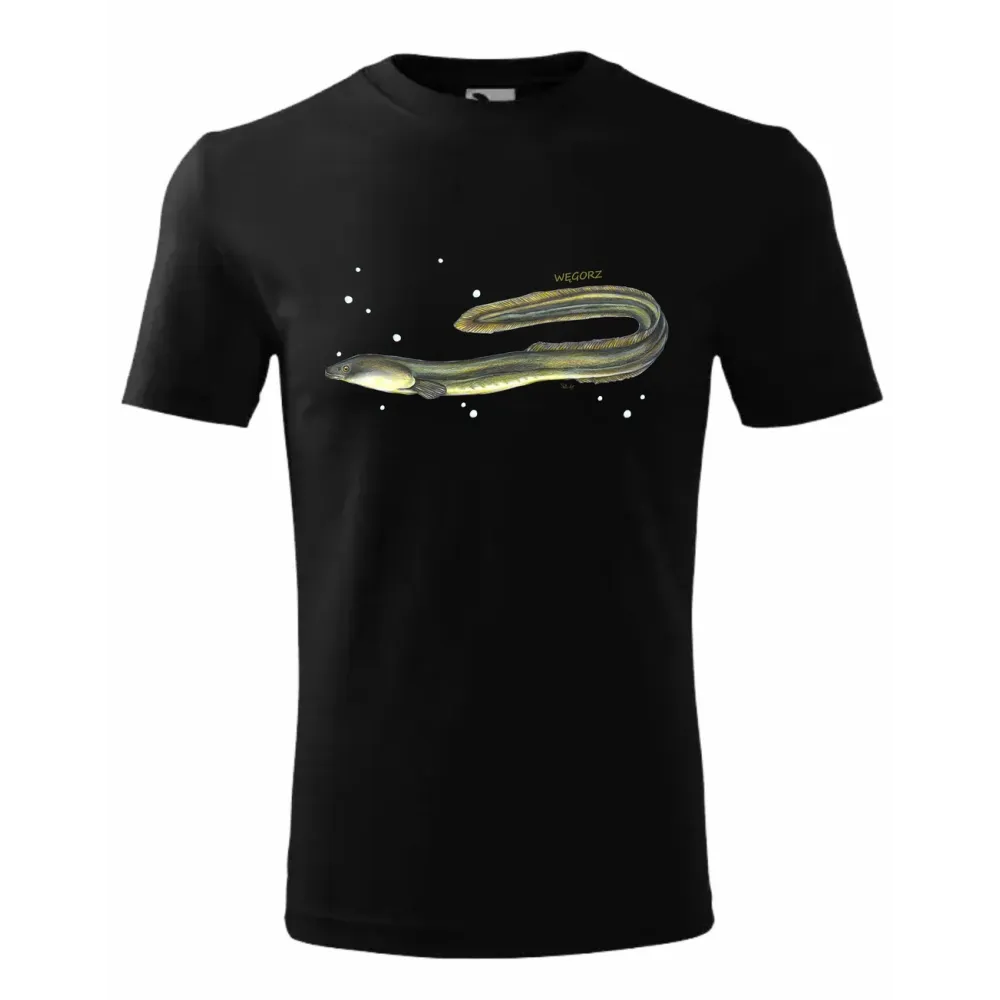 WYSOKIEJ JAKOŚCI KOSZULKA BAWEŁNIANA MĘSKA CZARNA KOLEKCJA RYBY SŁODKOWODNE