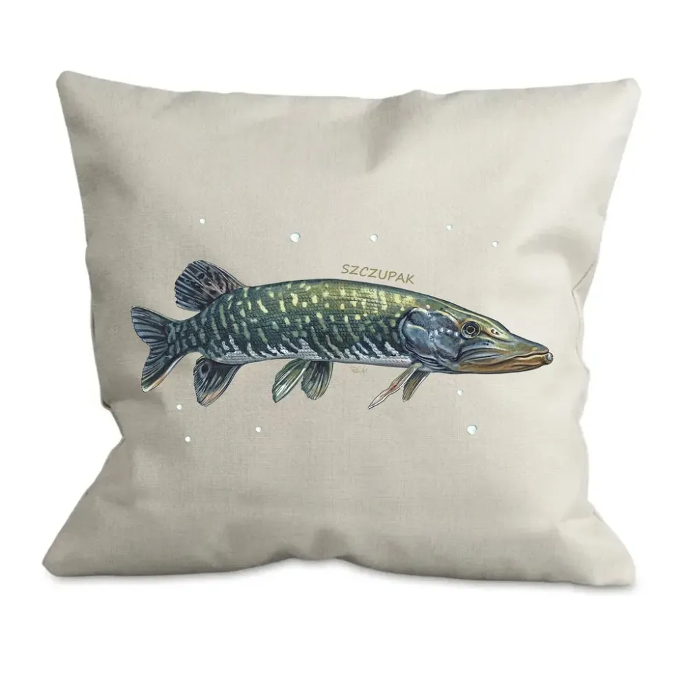 Poszewka bawełniana eco 38x38cm z wkładem - RYBY SŁODKOWODNE