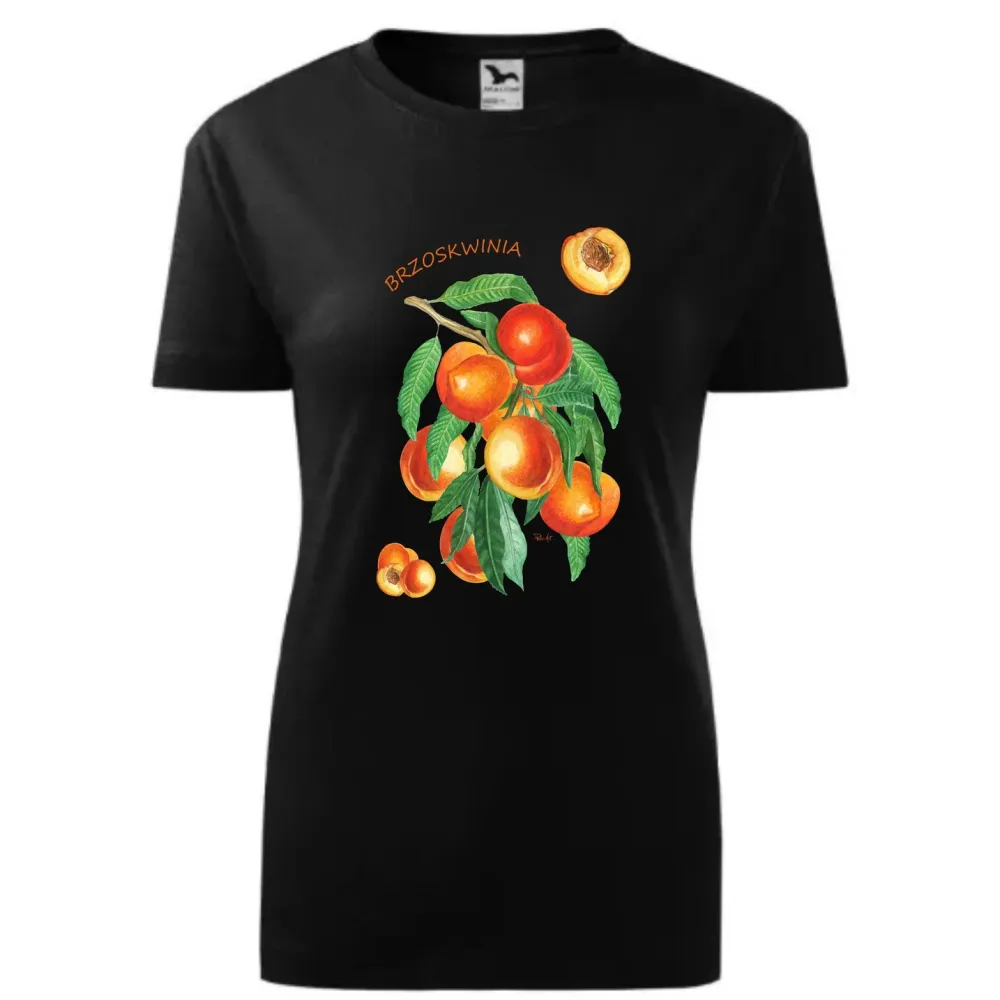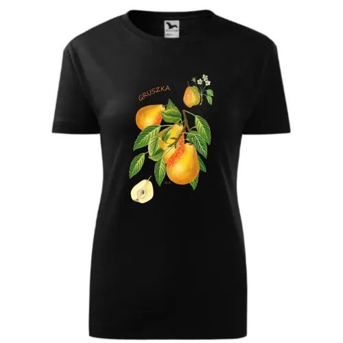 WYSOKIEJ JAKOŚCI KOSZULKA BAWEŁNIANA DAMSKA CZARNA KOLEKCJA OWOCE